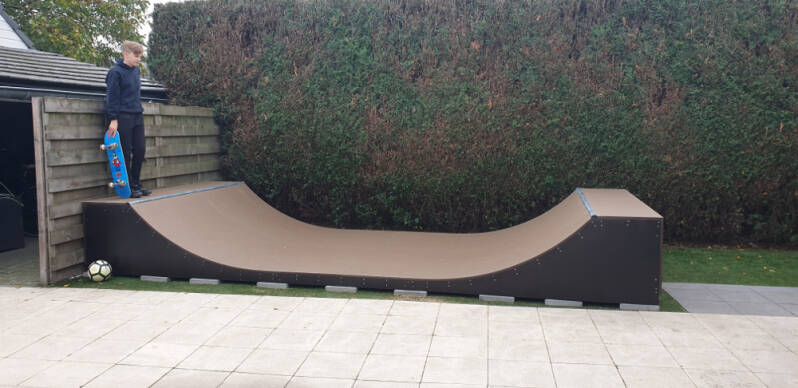 Je kunt de miniramp het beste op een vlakke en verharde ondergrond plaatsen. Het is ook mogelijk om de miniramp op gras te zetten, maar we raden dan aan om deze op een aantal tegels te zetten, zodat hij niet met het hout in het natte gras staat. Wij kunnen deze tegels tegen een meerpijs verzorgen, of we leveren een tekening aan hoe je deze zelf kunt plaatsen.